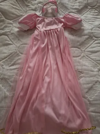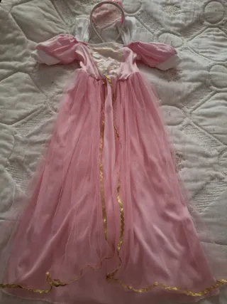 Precioso vestido de princesa en color rosa, ideal para carnavales o fiestas. - Incluye diadema a juego. - Mangas abullonadas. - Falda de tul. - Detalles dorados en el escote y bajo.