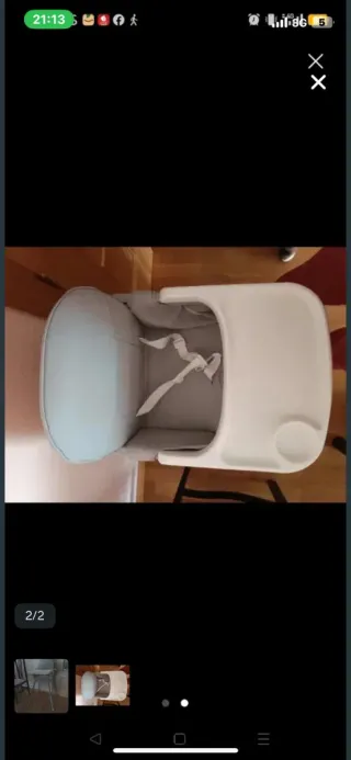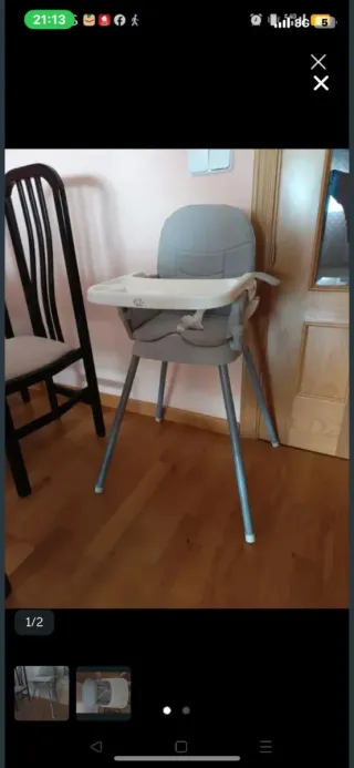 Trona de bebé en color gris, con bandeja. - Asiento acolchado. - Estructura de patas metálicas.