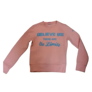 Sudadera de color rosa con un mensaje inspirador. Tiene pelotillas del uso. - Diseño con texto BELIEVE ME THERE ARE No Limits en azul. - Manga larga. - Cuello redondo.