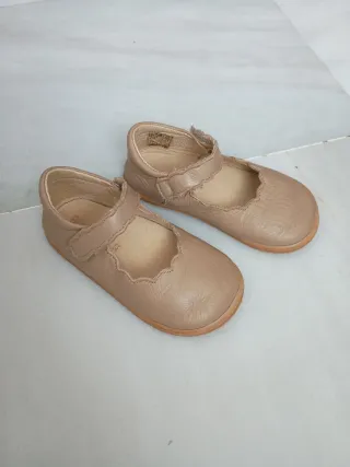 Merceditas de la marca Blanditos by Crio's en color Nube. - Talla 23. - Cierre de velcro. - Diseño con borde festoneado. -De piel.