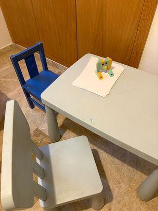 Conjunto de mesa y dos sillas infantiles de IKEA. Perfectas para que los más pequeños jueguen o hagan sus manualidades.