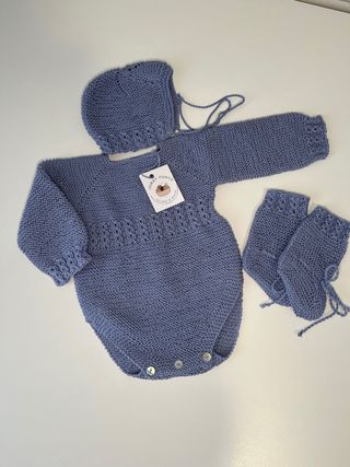 Conjunto bebé algodón 100% tejido a mano