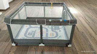 Parque infantil con gatera en muy buen estado. Ideal para que los más pequeños jueguen y exploren de forma segura. - Diseño con estampado de carreteras y animales. - Puerta de acceso. - Laterales de malla transpirable.