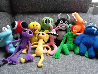 Colección de peluches de Rainbow Friends. Incluye 11 personajes. - Diseños coloridos y divertidos. - Material suave al tacto.