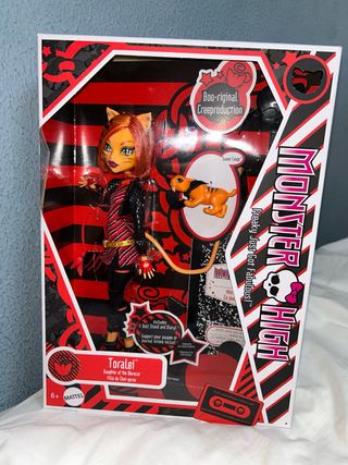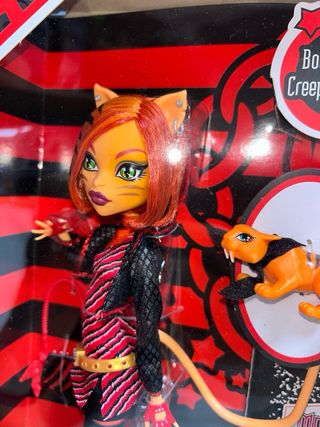 Muñeca Toralei de Monster High, primera edición. - Incluye soporte para muñeca y diario. - Personaje: Toralei Hija del Hombre Gato. - Marca: Mattel.