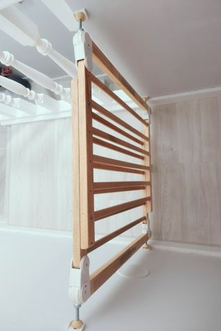 Barrera de seguridad madera bebé regulable. -> Perfecto estado. -> Se incluye con todo para que puedas instalarlo ya. Se puede montar con tornillos o mediante sujeción a presión. Es extensible para adaptarse a diferentes anchos (de 63cm a 106cm). Ideal para evitar que los bebés o las mascotas accedan a zonas malas.