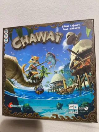 Juego de mesa Chawai, una aventura tropical. - Diseñado por Bruno Faidutti y Paul Mafayon. - Para 2-4 jugadores. - Edad recomendada: 8+ años. - Duración aproximada: 20 minutos.