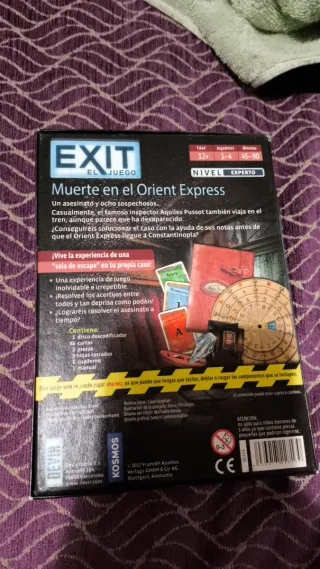 Juego de mesa EXIT: Muerte en el Orient Express. - Nivel de dificultad: Experto. - Diseñado por Inka y Markus Brand.