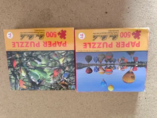 Dos puzzles de la marca Bei Bi La, cada uno con 500 piezas. Ideales para pasar tiempo de ocio. - Puzzle 1: Globos aerostáticos sobre un lago. - Puzzle 2: Pájaros coloridos en ramas. - Cada puzzle mide 18.25 x 11 pulgadas (46 cm x 28 cm). - Recomendado para mayores de 9 años.