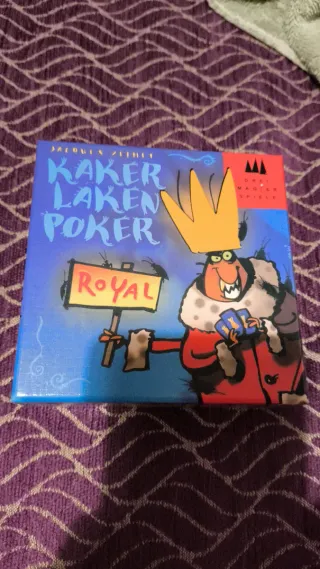 Juego de mesa Kaker Laken Poker de Jacques Zeimet. - Ilustración de un rey con corona y cartas. - Incluye un cartel con la palabra ROYAL.