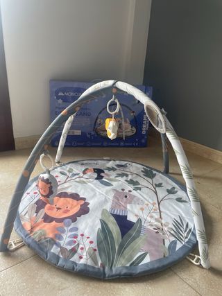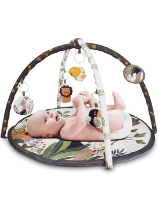 Gimnasio para bebés con alfombra de juegos y varios juguetes colgantes. - Diseño con temática de animales y naturaleza. - Incluye espejo de seguridad. - Juguetes con diferentes texturas y sonidos.