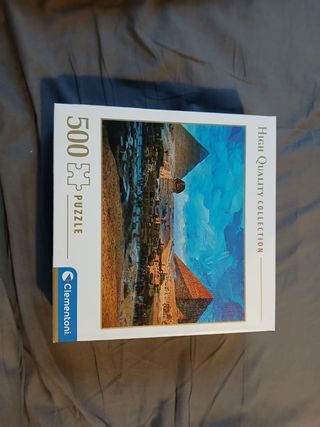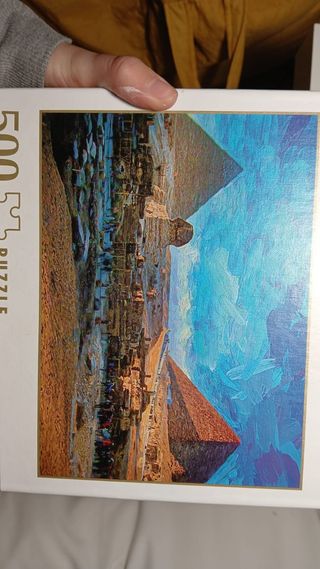 Puzzle de 500 piezas con una imagen de las Pirámides de Giza y la Esfinge. - Representación artística de un paisaje egipcio. - Ideal para aficionados a los puzzles y la historia.