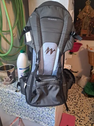 Mochila porta bebé de la marca Quechua, ideal para llevar a los más pequeños cómodamente. - Diseño ergonómico. - Cinturón lumbar acolchado. - Tirantes ajustables.