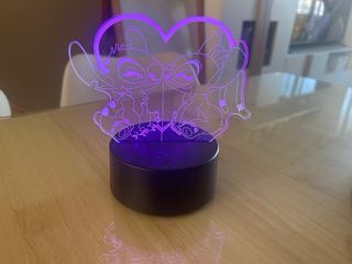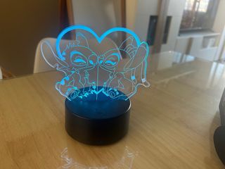 Encantadora lámpara con diseño 3D de Stitch y Scrump en forma de corazón. Ideal para dar un toque especial a cualquier habitación. - Figura de Stitch y Scrump. - Diseño en forma de corazón. - Base iluminada.