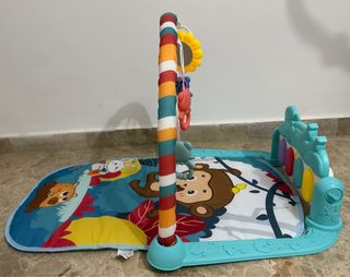 Alfombra de juegos interactivo para bebés con piano. - Incluye arco con juguetes colgantes. - Piano musical integrado en la base. - Diseño colorido con animales. - Estimula el desarrollo sensorial y motor.
