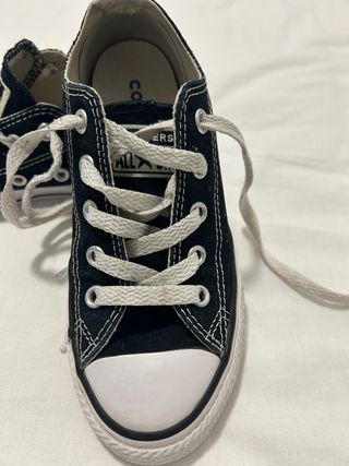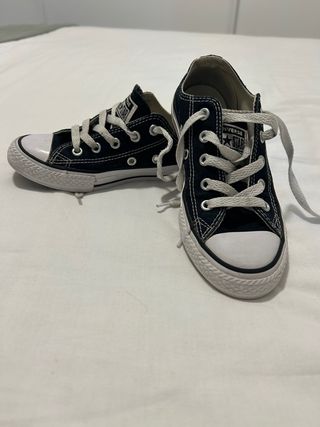 Zapatillas Converse bajas de color negro. - Talla 30. - Cierre con cordones blancos. - Suela de goma blanca.