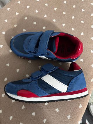 Zapatillas deportivas para bebé. - Cierre de velcro. - Diseño en azul con detalles en rojo y blanco. - Suela de goma.