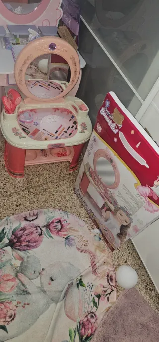 Bonito tocador infantil de juguete, perfecto para horas de diversión. - Diseño en color rosa y blanco. - Incluye espejo. - Accesorios de maquillaje de juguete.