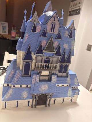Castillo de Frozen de Disney, inspirado en el reino de hielo. Incluye figuras. - Diseño detallado en tonos azules y blancos. - Elementos translúcidos que simulan hielo. - Estructura de varias plantas con torres y arcos. - incluye figuras de la película. - tiene luz y sonido