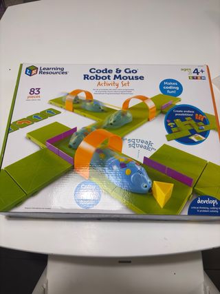 Set de actividades Code & Go Robot Mouse de Learning Resources. Incluye 83 piezas para crear laberintos y programar el ratón. - El ratón se mueve siguiendo los códigos programados. - Fomenta el pensamiento crítico y la resolución de problemas. - Incluye piezas para construir caminos y un queso para el ratón. - Apto para edades de 4+ años. - STEM. - Usado 2 veces