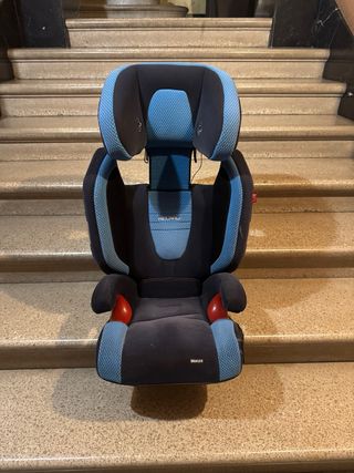 Silla de coche RECARO Monza en color azul y negro. Diseñada para la seguridad y comodidad. - Reposacabezas ajustable. - Laterales acolchados. - Funda extraíble y lavable.