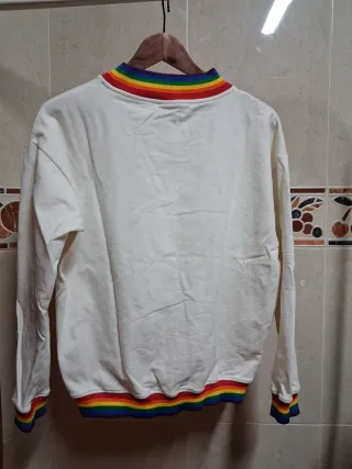 Sudadera beige de la marca Yporque. - Cuello y puños con diseño de arcoíris. - Estampado INSPIRE THE WORLD en el pecho. - Etiqueta de la marca en el bajo. - Ver últimas fotos con manchas de lavado