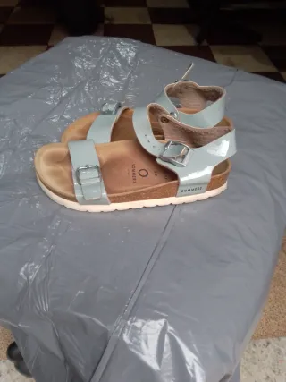 Sandalias de la marca Sommers en talla 30. Son cómodas y perfectas para el día a día. - Color gris claro. - Cierre de hebilla ajustable. - Suela de corcho.