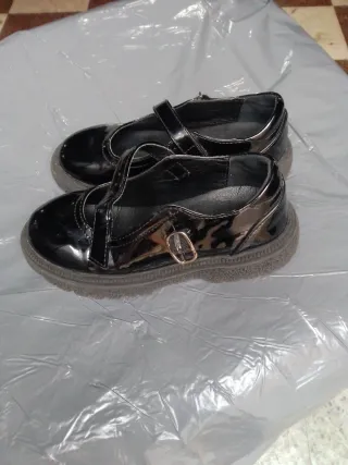 Zapatillas de charol para niña en color negro. - Cierre de hebilla. - Suela de goma. - Talla 30.
