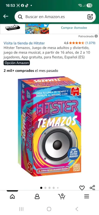 Juego de mesa Hitster Temazos, ideal para crear tu línea de tiempo musical y disfrutar al máximo. - Incluye más de 300 éxitos nuevos. - Diseñado por Jumbo.