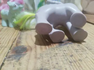 Conjunto de siete figuras de ponis de juguete, cada uno con su propio color y estilo. - Incluye ponis de varios colores como rosa, blanco, amarillo y verde. - Algunos ponis tienen crines y colas de colores vibrantes. - Figuras detalladas con ojos cristal