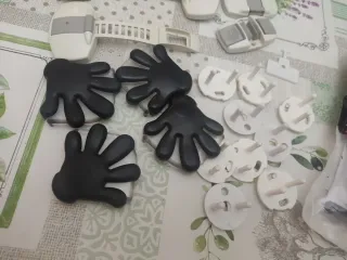 Lote de protecciones Ikea para la seguridad del hogar. - Incluye protectores para enchufes. - Barreras para cajones y puertas. - Protectores de esquinas. - Diseño en color blanco y gris. - Incluye bolsa de protecciones PATRULL.