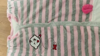 Pijama saco para bebé con un diseño de rayas en rosa y gris. Como nuevo, muy poco uso, bien cuidado
