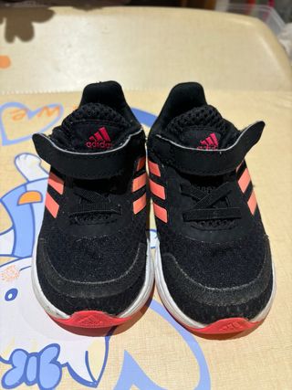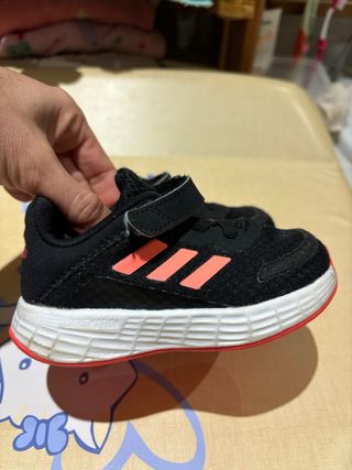 Zapatillas deportivas Adidas para niña talla 21 - Cierre de velcro. - Tres bandas laterales. - Logo de Adidas en la lengüeta y la suela.