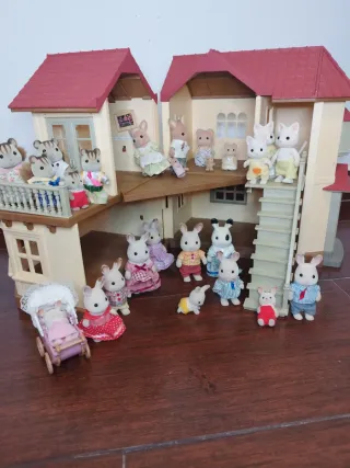 Conjunto de figuras y casa de Sylvanian Families. Ideal para coleccionistas y para que los más pequeños creen sus propias historias. Se incluyen todo lo que se ven en las fotos, casa, figuras, accesorios, barco, colegio...algunas camas son literas Tal cual las fotos, - Incluye varias figuras de animales. - La casa tiene varios niveles y accesorios. - Diseños detallados y coloridos.