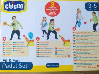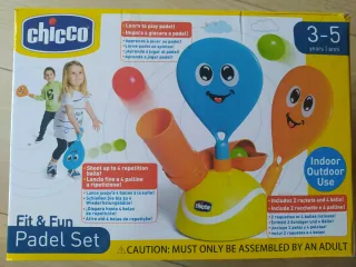 Set de pádel Chicco Fit & Fun para niños de 3 a 5 años. Ideal para jugar en interior o exterior. - Incluye 2 raquetas y 4 pelotas. - Fomenta el aprendizaje del pádel. Sin abrir. Precio negociable
