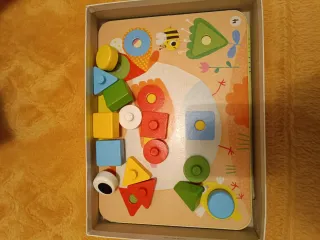 Juego educativo de encajar formas para bebés. - Incluye piezas de diferentes formas geométricas. - Diseñado para el aprendizaje temprano de colores y figuras. - Marca Goula. La caja está un poco deteriorada pero el juego está en perfectas condiciones.