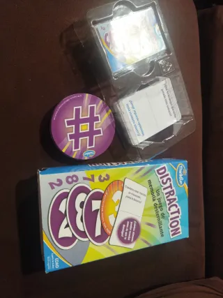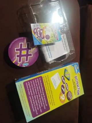 Juego de mesa Distraction de ThinkFun, perfecto para poner a prueba tu memoria. - Incluye 1 baraja de 54 cartas redondas con números. - Incluye 1 baraja de 50 cartas Distraction con 100 preguntas. - Incluye instrucciones.