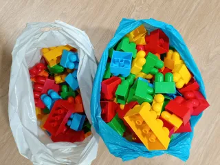 Lote de bloques de construcción de plástico. Más de 200 piezas. - Piezas de colores variados: rojo, azul, verde y amarillo. - Diseñados para encajar fácilmente. - Ideales para el desarrollo de la creatividad.
