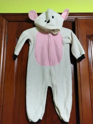 Disfraz tierno de oveja para los más pequeños. Perfecto para fiestas o para estar cómodo en casa. - Color blanco y rosa. - Material suave y cálido. - Capucha con orejas y detalles de cara de oveja. - Cierre de cremallera frontal.