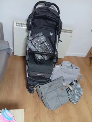 Silla de paseo de la marca Be Cool, en color gris. Incluye accesorios. - Silla de paseo plegable. - Incluye burbuja de lluvia. - Incluye bolso. - Incluye otra bolsa de transporte.