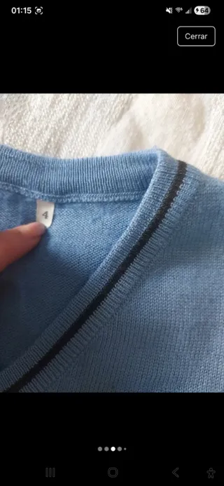 Jersey de punto azul, zona norte. Talla 4. - Cuello en pico con ribete. - Escudo bordado en el pecho. - Puños y bajo con detalle de rayas. Tengo 2, el precio es por cada uno