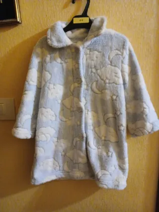 Bata de casa para niña con un divertido estampado de nubes y lunas. Talla 36 meses - Material suave y cálido. - Diseño con botones. - Manga larga.