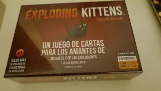 Juego de cartas Exploding Kittens, edición original. - Juego para 2-5 jugadores. - A partir de 7 años. - Ideal para amantes de los gatos, explosiones, rayos láser y cabras. - Juego de fiesta (Party Game). - Respaldo histórico en Kickstarter.
