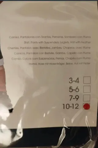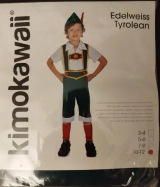 Disfraz infantil de estilo tirolés Edelweiss. - Incluye camisa, pantalón con tirantes, sombrero sin pluma y polainas. - Talla 10-12 años.