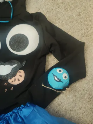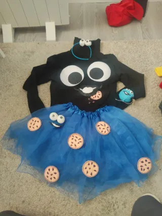 Disfraz hecho a mano con tul y goma Eva -Falda de tul con galletas -Camiseta negra con detalles en goma Eva -Disdema y pulsera