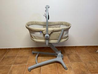 Minicuna multifunción de la marca Chicco. Ideal para los primeros meses del bebé, para las siguientes etapas para la alimentación, para sus momentos de entretenimiento... Regulable en altura. Con bandeja para comer y arco de juegos.