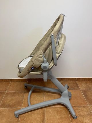 Mecedora de bebé en perfecto estado, ideal para relajar a los más pequeños. Funciona con pilas. - Diseño cómodo y seguro. - Tejido suave y fácil de limpiar. - Estructura resistente.