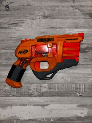 Pistola de juguete Nerf modelo Doomlands Persuader. - Color naranja y gris. - Empuñadura con detalles en negro. - Bastante potencia
