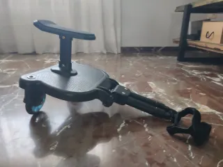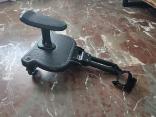 Adaptador de asiento para carrito de bebé, ideal para añadir un espacio extra. - Plataforma con ruedas. - Respaldo acolchado. - Arnés de seguridad.