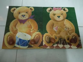 Original perchero infantil con un diseño de dos ositos. - Pintura a mano. - Marco de madera.